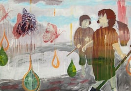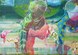 Acryl, Kreide auf Leinwand